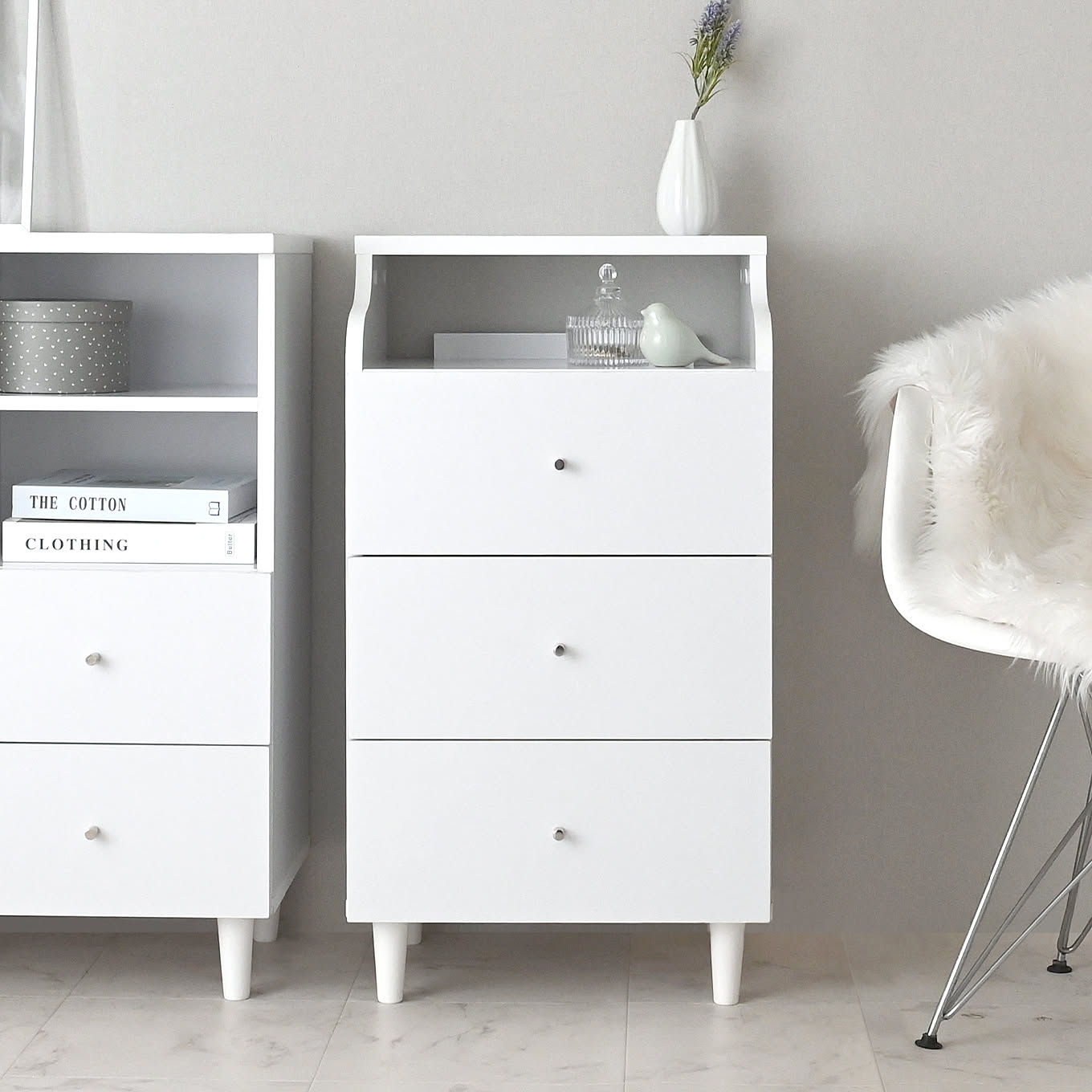幅45cmのコンパクトサイズながら、洋服や小物など生活感の出やすいアイテムもおしゃれに収納できます。