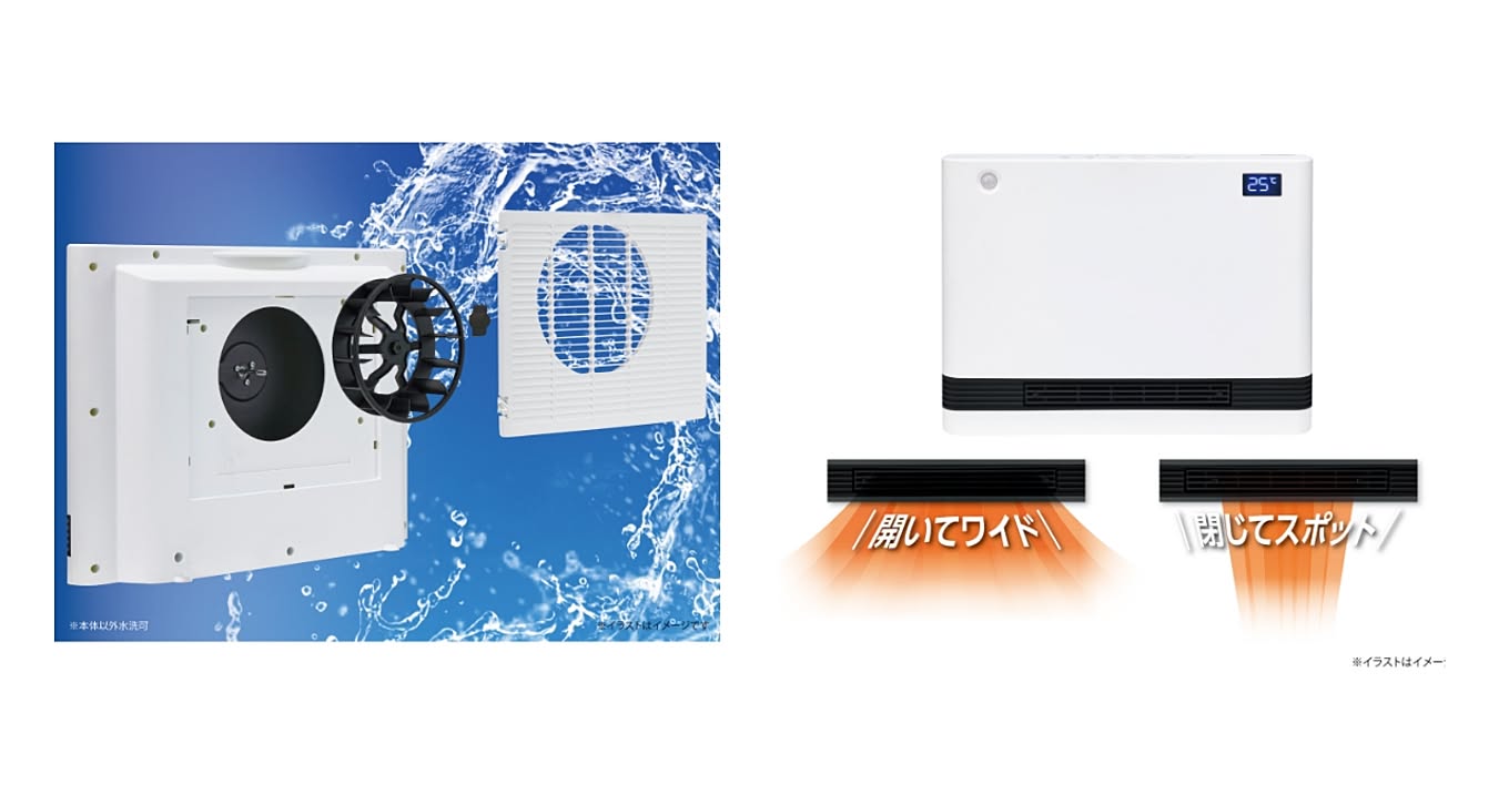 「ファンを取り外して洗えるセラミックヒーター」は、業界初※本体内部の送風ファンを工具不要で簡単に取り外して水洗いできるので、いつでも清潔な温風で暖まれます。