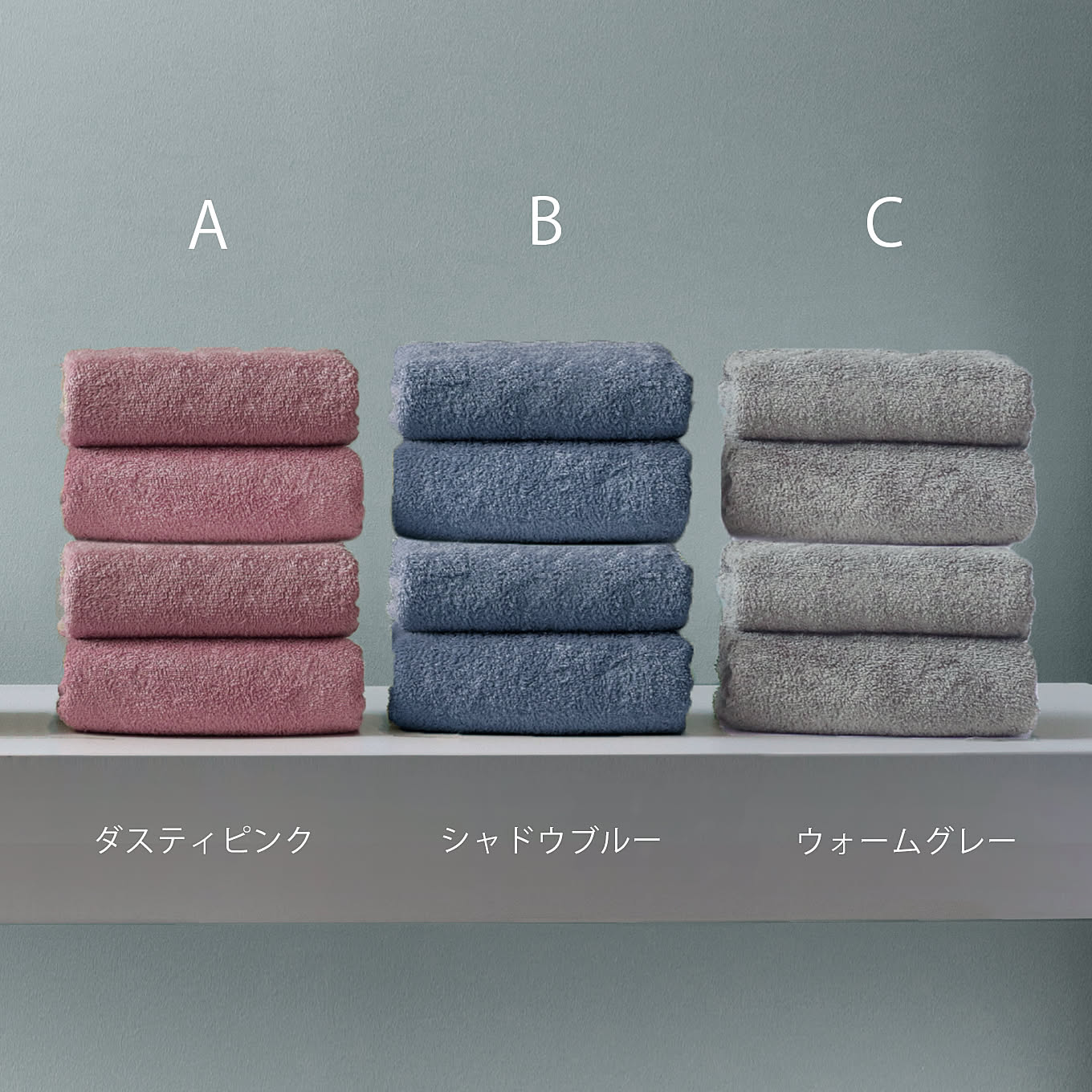 カラー:「A:ダスティピンク」「B:シャドウブルー」「C:ウォームグレー」の中からお好きな1色をお選びください。同色4枚セットでお届けいたします。