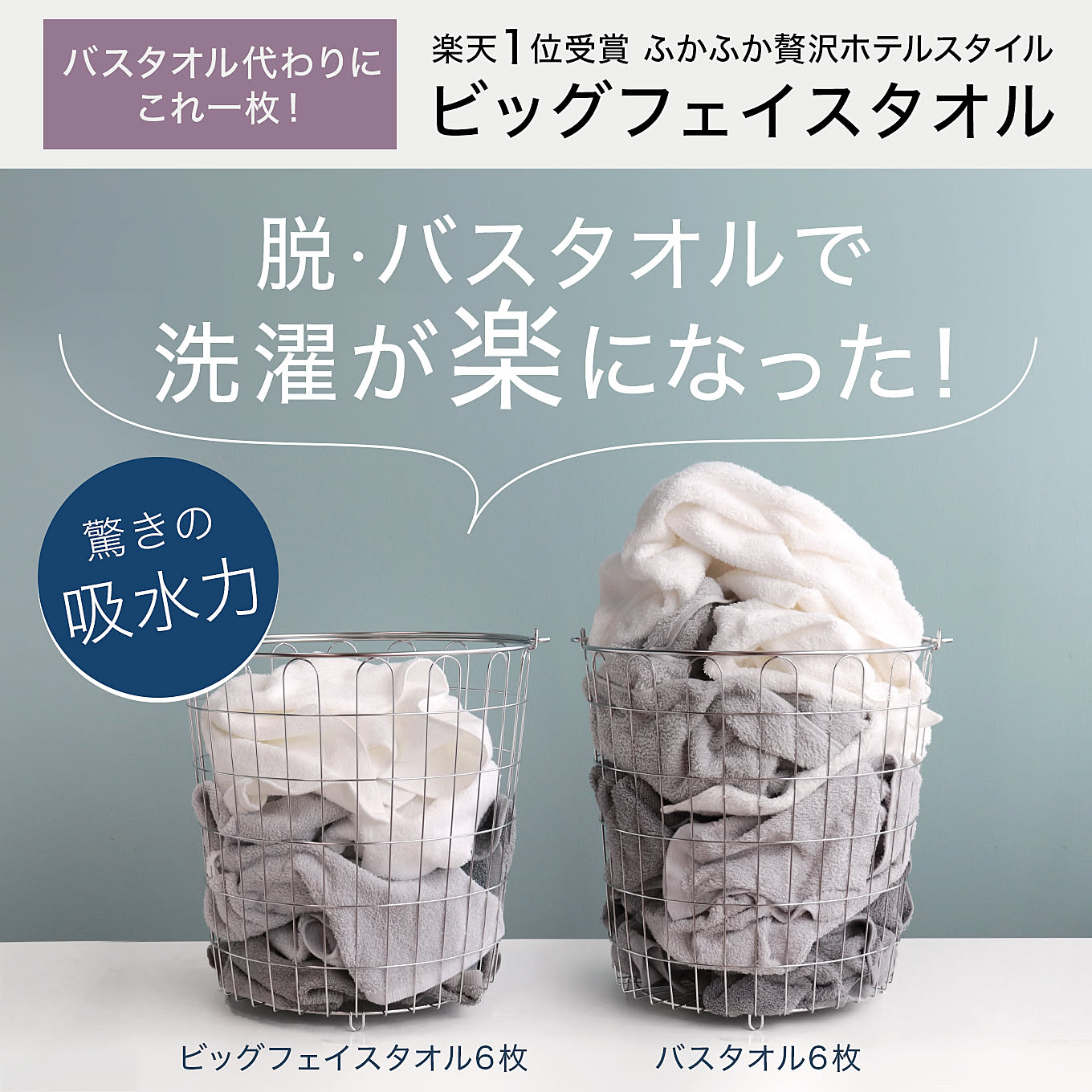 バスタオルからビッグフェイスタオルに切り替えることで毎日のお洗濯量も激減!