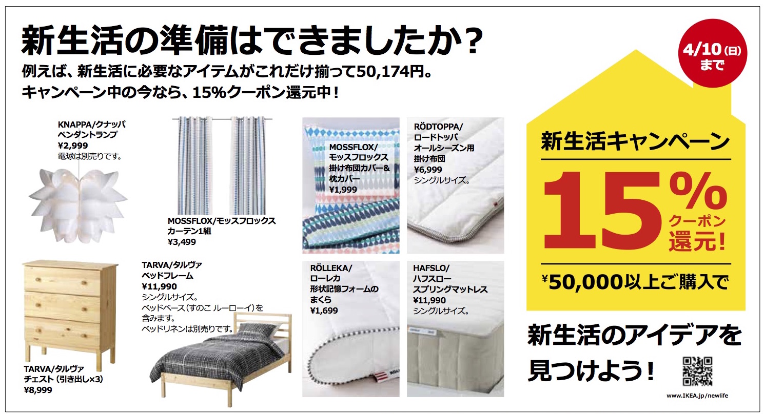 4/10(日)までは新生活アイテムが15%クーポン還元!