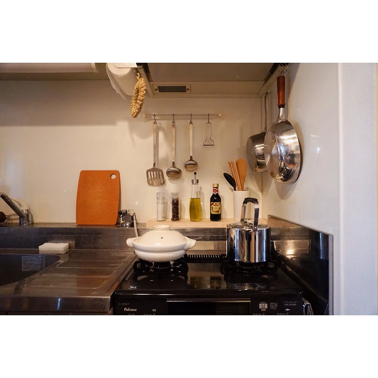 玄関から奥に細長く伸びるキッチンは、収納スペースや作業スペースなどを確保するのがなかなか難しいもの。しかしここはさすがのseiyaさん。シンクを背にした壁には棚を取り付けて見せる収納スペースに。そして玄関のすぐ脇には合板に黒板塗料を塗った遊び心溢れるスペースを設けるなど、個性を出すことも忘れません。まだまだ発展途上というseiyaさん宅。これからもその腕とクリエイティブなセンスでわたしたちを魅了してくれることでしょう。