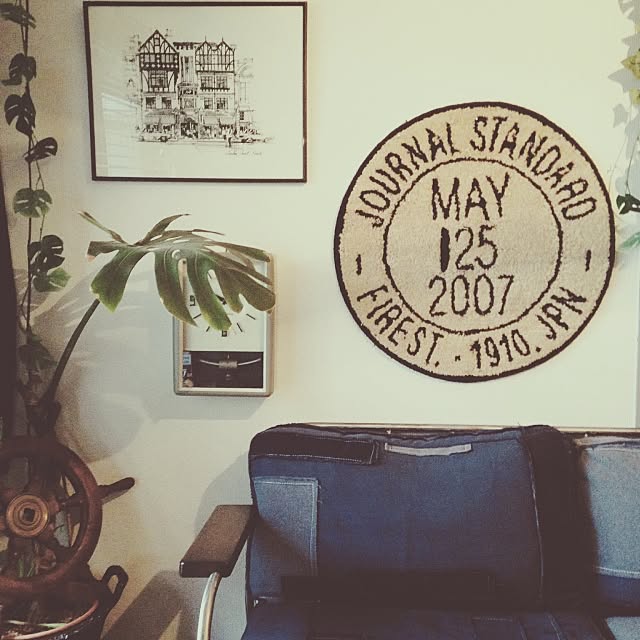 インテリア雑貨の中で定番人気アイテムでもあるスタンプラグマット。まあるいフォルムがとてもキュートで、インパクトもあるデザインです。玄関やトイレなど、どこに飾ってもその魅力を発揮してくれそうですが、壁にタペストリーのように飾る斬新なアイデアも素敵。