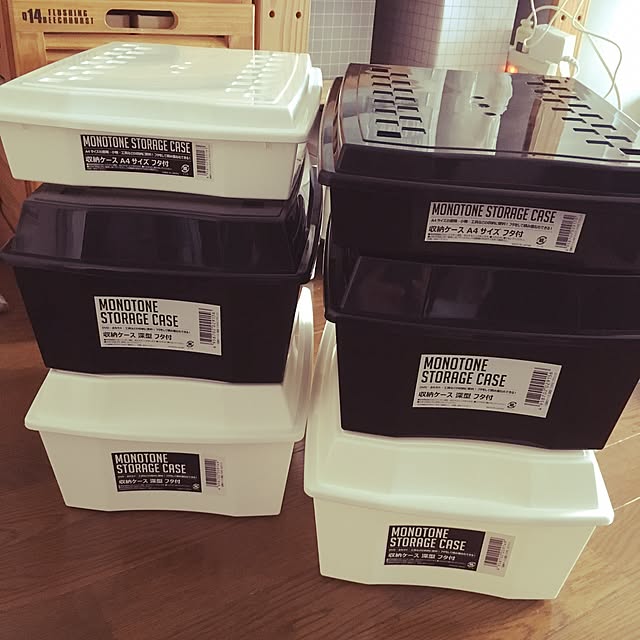 黒と白、2色のどちらも使えること間違いなしの、ミーツのフタつきボックス。埃が気になる食品の収納にも、フタがあれば安心して使えますね。収納したいものに合わせてサイズを選べるのも便利です。