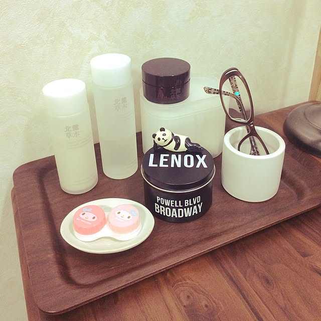 トレーの上に、コンタクトレンズとセットで眼鏡を収納されています。セット配置をしておくと、コンタクトレンズと眼鏡の付け替えがスムーズで便利ですね。眼鏡の収納方法も、植木鉢を使ったスタンド型にしているので、出し入れも簡単です。