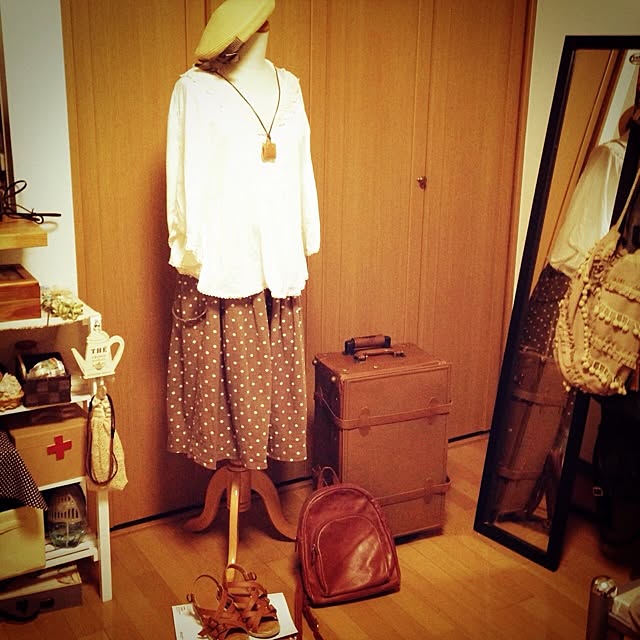 姫系インテリアの家具でそろえたお部屋の雰囲気に、ぴったりの洋服を着せて、よりエレガントな空間になっています。洋服のコーディネートを決めるときにも、大活躍しそうですね。