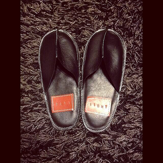 niko and...のルームシューズを使っているユーザーさん。表地の合成皮革と、裏地のもこもこの異素材コンビがポイントになっています。クールな印象で、かっこいいですね。色味を抑えた、ユーザーさんのお部屋にぴったりです。