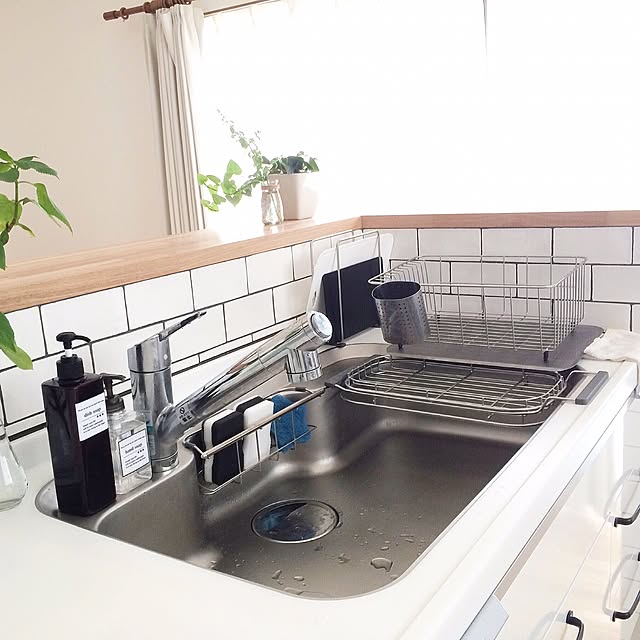 こちらのユーザーさんは、キッチンシンクのまわりに白いサブウェイタイルを貼っています。最近人気の高いサブウェイタイルを使うことで、程よいトレンド感が出ていますね。また、白いタイルは清潔感に溢れていて、キッチンにはもってこいのカラーです。