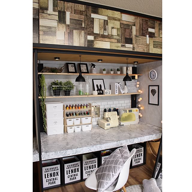 丸ごと押入れを趣味スペースにするのはいかがですか?天袋はお好きなリメイクシートでデコレーションし、上段の壁に棚を取り付ければ、収納力抜群の趣味スペースの完成です。こちらのユーザーさんはさらに作業しやすいように天袋下にライトをつけています。この一角自体がお部屋の雰囲気をセンスアップさせています。