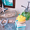 こちらのお部屋でもフラミンゴのクッションカバーが使われています。布団カバーや、ラグ、ラウンドビーチタオルなどで多く寒色を使用しているのが夏の海を想像させますね。そこにピンクで差し色をしているのが重要。全体の水色とピンクのパステルカラーの組み合わせが、マリンスタイルにガーリーさを足しています。