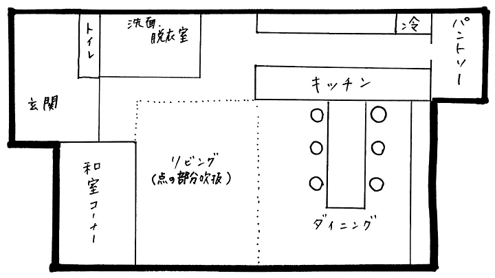 一体感のあるLDKのオープンキッチン。キッチンから正面にはダイニングスペースがあり、食卓に座る家族と顔を見合わせながらやり取りすることができ、配膳にも便利です。リビングへも視線が届き、家族の様子がよくわかりますね。一方、リビングのソファからはキッチンの中まで直接視線は届かないので、リビングに独立感が生まれ、生活感を視線に入れずにくつろぐことができます。お客さんが来た際にも、キッチンの生活感を上手にカバーできる間取りになっています。さて、keryomamさんのキッチンにはさらに素敵な特徴がありました。3つのキーワードに沿ってみていきましょう!