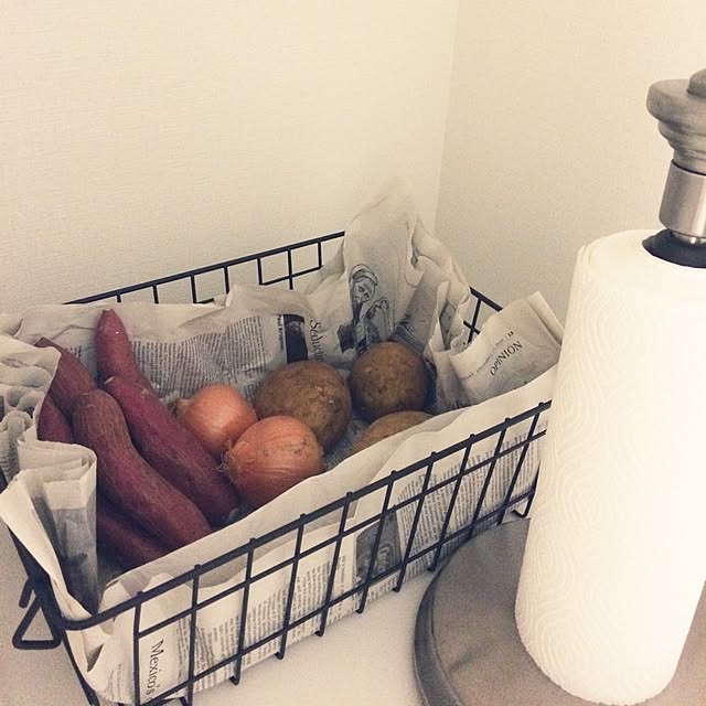 シンプルなデザインが多く、どこで使っても様になるのがポイントです。Dariaさんは英字新聞を敷きこんで、野菜のストッカーに積み重ねできるバスケットフィロー(現在はフィロー2)のハーフサイズを愛用されています。英字新聞でカバーされていて、スタイリッシュに見えますね。