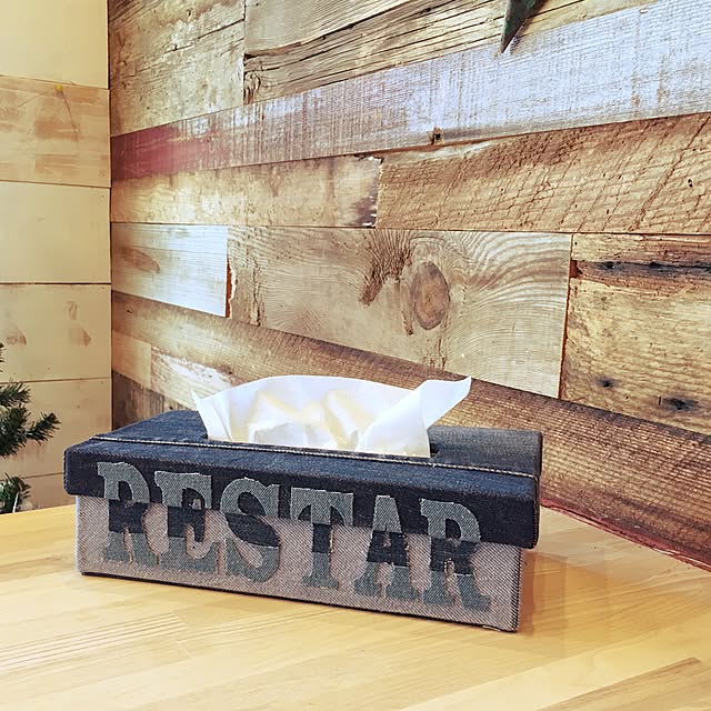 こちらはデニム生地でカルトナージュされたティッシュケース。ヴィンテージな雰囲気がかっこいいですね。カジュアルなのでお部屋のインテリアにも合わせやすそうです。また、男性へのプレゼントにされても◎。