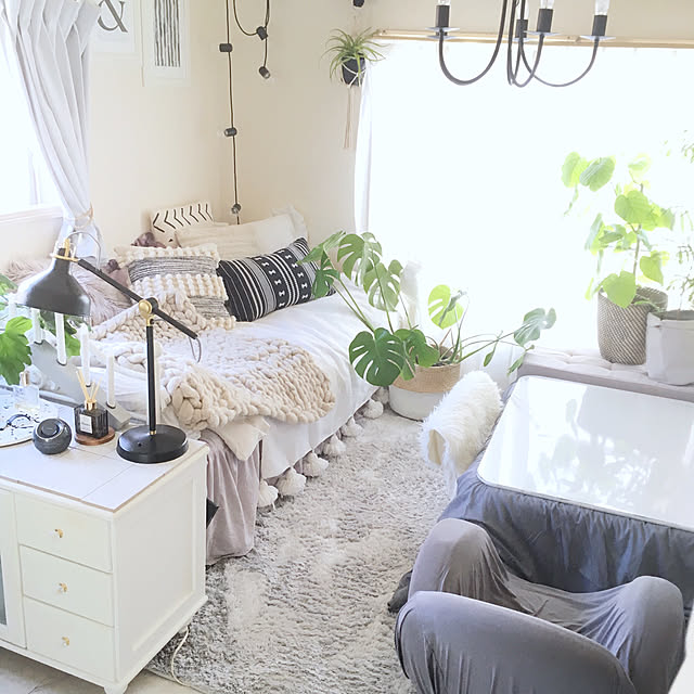 昨年から人気のチャンキーニット。こちらのユーザーさんは、チャンキーニットのブランケットをお部屋に追加。ざくざく編みと素材にほっこりしますね。他にもニットをタペストリーや、リースで取り入れても可愛いですよ。
