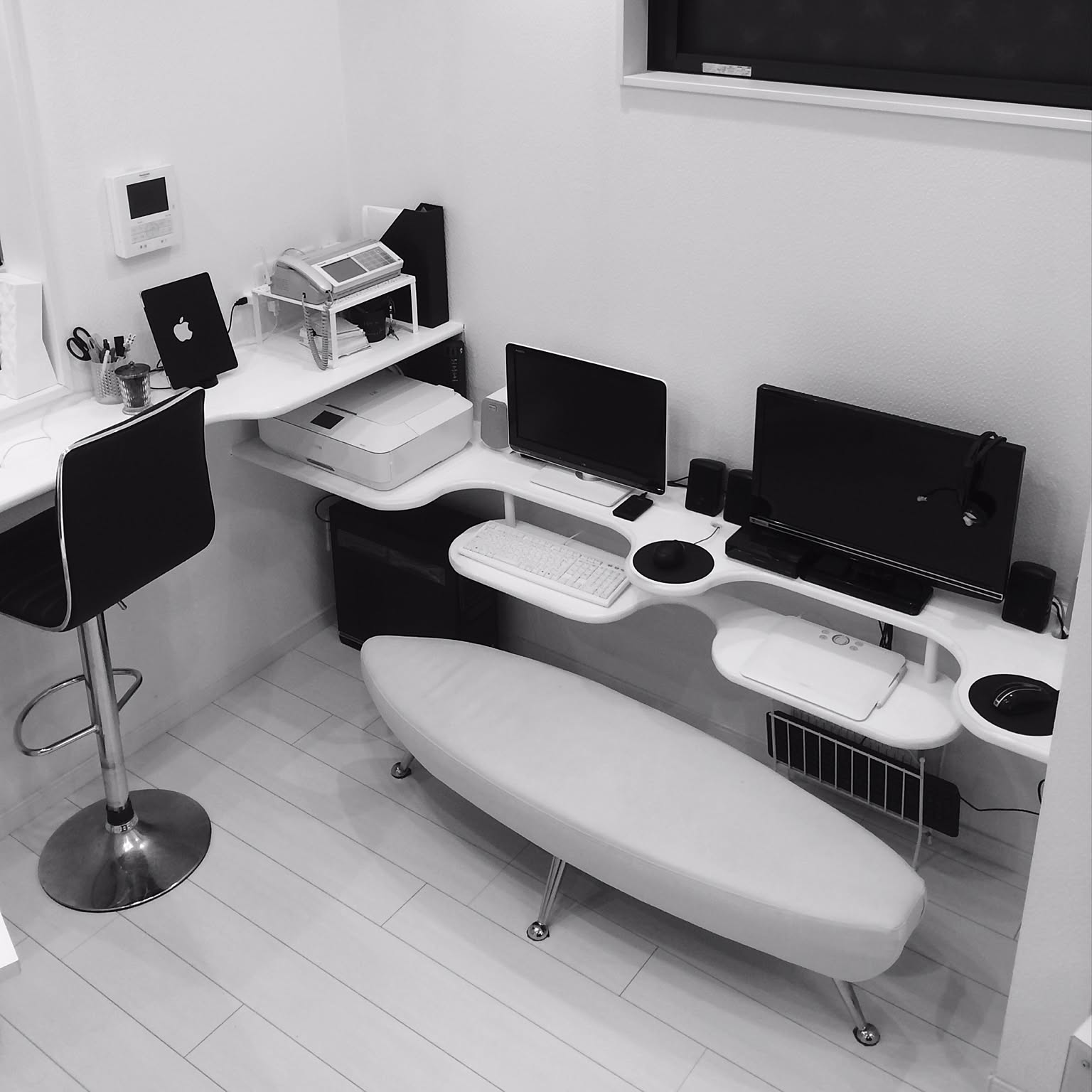 MArukOさんのデスクは、とても自分で作っているとは思えないクオリティのデスクです。モノトーンで統一された空間に馴染む、見たことのないデザインのデスクが印象的です。オーダーメイドでないと絶対に手に入らないようなデスクも作れてしまうのは、すごいですね!