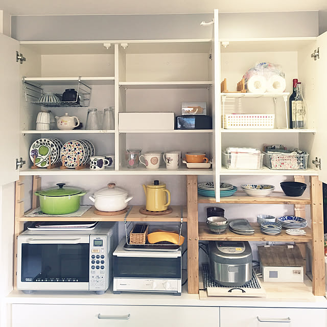 詰め込みすぎの予防には、こちらのアイデアが大活躍。「扉があることで油断して、中がごちゃごちゃしていた」というユーザーさんは、収納の扉を撤去し、オープン収納に作り替えました。人目につくことで、整理整頓への意欲を上げ、サッパリを心掛けられるようになる。モチベーションの維持に、大変役立つアイデアです。
