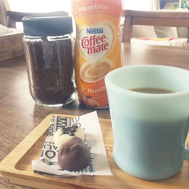 ファイヤーキングのマグカップは、置いてあるだけでもカフェっぽいかっこよさです。コーヒーを入れると、半透明のミルクガラスからほんのり中の色が透けて見え、ほっこり気分に。小さいサイズの木製プレートに、チョコレートを添えれば、とっておきのカフェタイムになりますね。