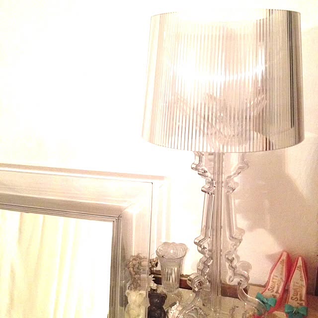 vanillaさんの玄関に飾られているテーブルランプは、バロック調のスタンドデザインが美しいブルジーです。シェードには、細いプリーツが作られているので、ライトをつけると光が美しく拡散されます。エレガントなデザインのブルジーは、リビングやベッドルームなどでも活躍してくれそうですね。