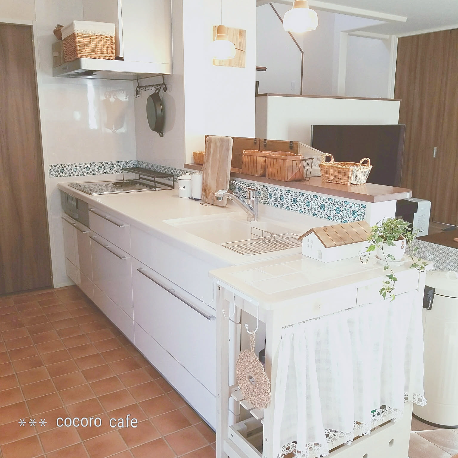 ホワイトと木や天然素材のナチュラルで優しい素材色で、暮らしをほっこりと包み込んだようなCoCoRoCafeさん宅。フォーカスしたキッチンは、そんなお住まいの中でも家族やゲストが集まるスポットです。印象的なのは、家電や雑貨、日用品といった家庭のアイコンたちが違和感なくインテリアや空間に溶け込んでいる点です。生活感が無理なくそこにあるけれど、生活感自体がインテリアとしても機能しているから、家庭の雰囲気でホッとさせてくれつつも、スタイリングはしっかりと完成されています。まずはCoCoRoCafeさんなりのキッチンづくりにおけるテーマやこだわりから教えてください。