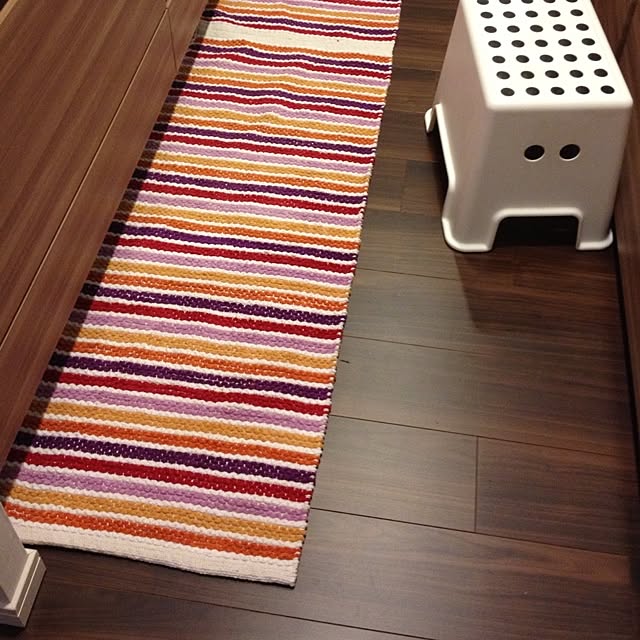 3色ラインのキッチンマットは、一気にナチュラルな空間に変えてくれます。pascalさんは、木目調にアレンジしたキッチンに、3色ラインのキッチンマットをプラス!「ナチュラルキッチン」を目指している人におススメのコーディネートです。