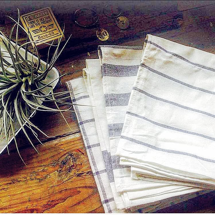 ブルーのラインがデザインされたキッチンクロスは、柄違いで4枚セットのお得なアイテム。edenさんは、サイズ感や使い心地など、お気に入りポイントを教えてくれました。フキンとしてはもちろんですが、カバーとしてかけて使ったり用途はさまざま。ループ付きなので、引っかけて見せる収納をするのもおすすめです。