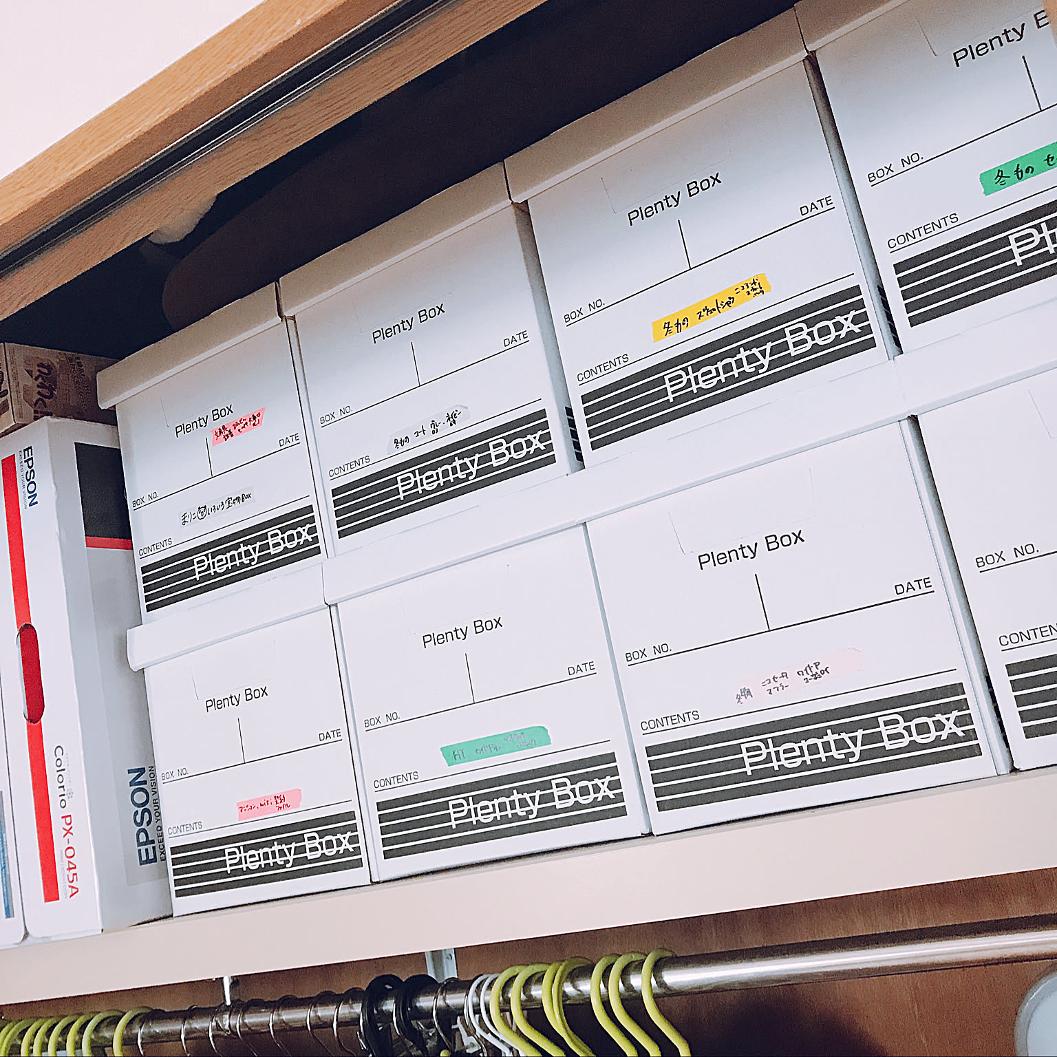 クローゼット内の洋服を整理されたCrayon283さん。Plenty Boxは、蓋付きなのでホコリが入らないところが特徴。積み重ねて収納ができるのもポイントです。種類ごとにカラフルなラベルを貼れば、オリジナル感が出せますね♪