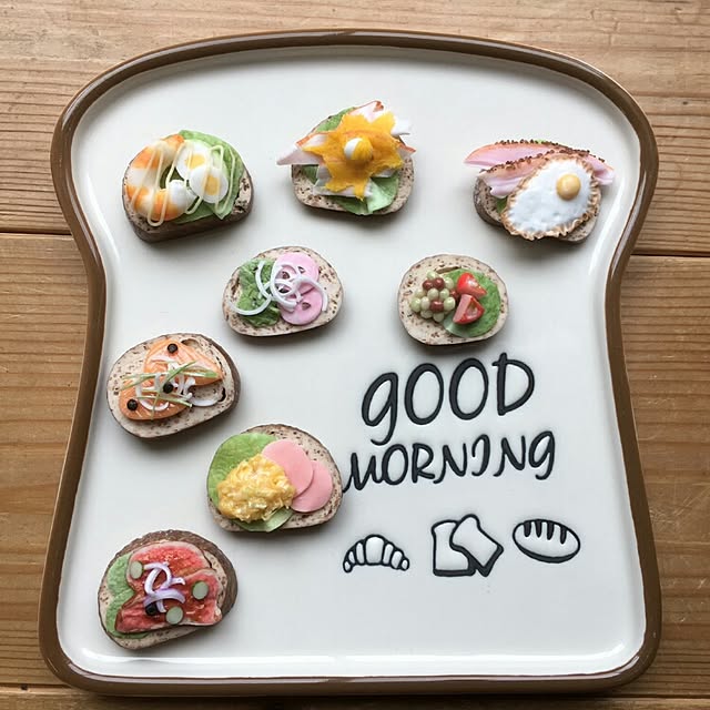 サンドイッチがモチーフになったマグネットです。こちらも樹脂粘土で作られているそうです。おしゃれなカフェで食べるサンドイッチのように、たくさんの野菜などがトッピングされています。メニューもいろいろあるので、このまま子どもたちのおままごとにも使えそうですよね。