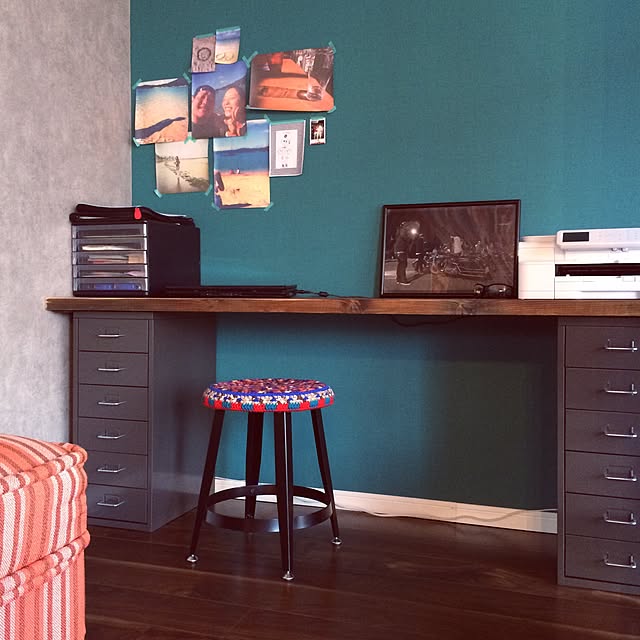 こちらのビンテージ感あふれるPCデスクはmanolaさんがDIYされたものです。自分で作ればサイズも自由なのがうれしいですね。壁紙や床と雰囲気もぴったりです。