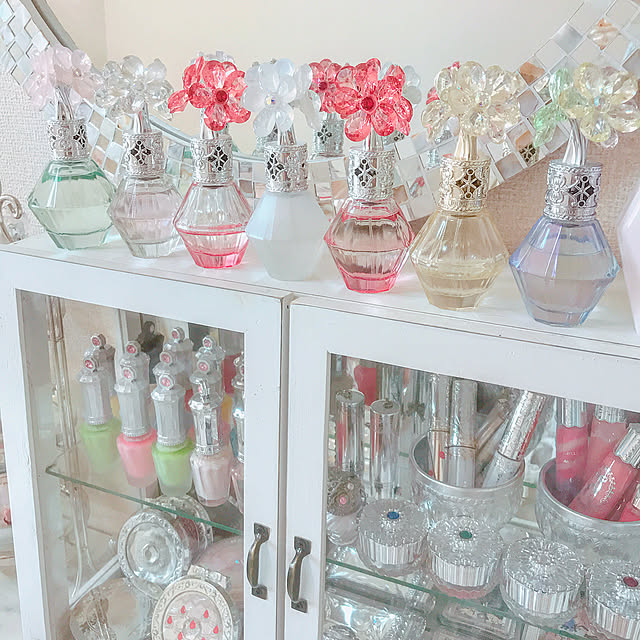 まるで、ジルスチュアートのコスメカウンターのようなyuyuさんのコスメ棚。リップやグロス類はまとめて、それ以外は並べてあります。やはり、見せる収納はyuyuさんのようにメリハリが重要ですね。