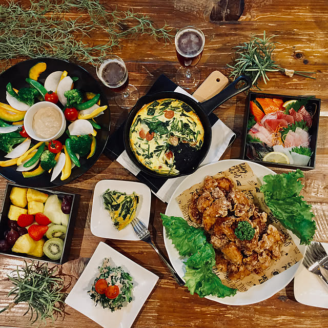 ホームコーディの食器は高級感があるので、chapiさんの豪華な料理とも相性抜群☆うらやましい食卓ですね。