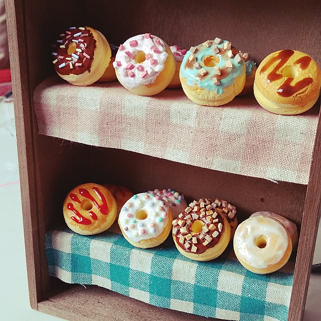 sakuさんはお嬢さんと一緒に作った、カラフルなドーナツをご紹介してくれました。色付けは絵の具やボンドを使うそうですよ。チョコスプレーやソースが乗ったドーナツは、ポップで元気になるカラーがそろっています。制作欲をかきたてられるアイディアですね。