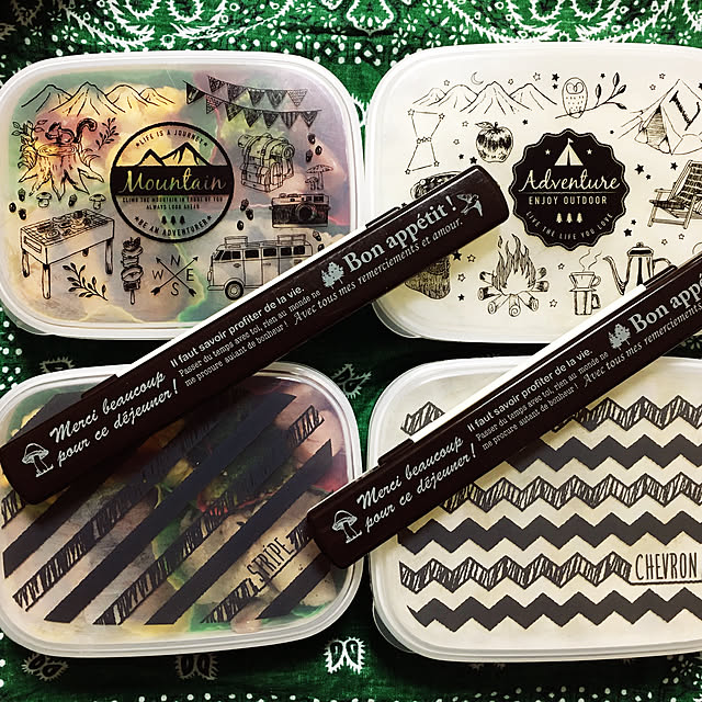 snowbearさんが高校生の息子さんと旦那さんのために選んだのは、セリアのモノトーンのお弁当箱です。アウトドアやストライプのデザインは、男性も持ちやすそうですね。たっぷりサイズなので、食べ盛りのお子さんにもぴったりですよ。食べ終えたら、入れ子式でコンパクトに持ち運べるところもうれしいポイントです。