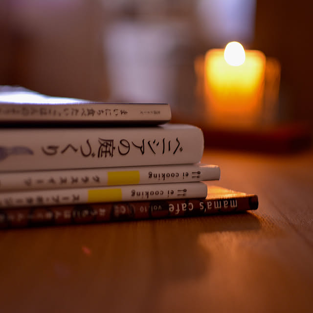 キャンドルを灯して、図書館で借りてこられたという本と一緒に夜時間を過ごしているユーザーさん。暮らしのインスピレーションになるような言葉や写真に、素敵な夢が見られそうです。