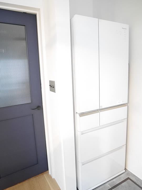「実は、リビングに私のワークスペースが欲しかったので、パントリーをつくる余裕がありませんでした。そうしたこともあり、キッチン収納をより有効活用するため、『在庫は最低限』を心掛けています。そのため、買い忘れがないよう、在庫ノートをつくったり、なくなりそうな食材や日用品は付箋で冷蔵庫に貼り出したりしています。買い物に行く時は、それらを写真に撮って出発。お陰で、買い忘れもほとんどなく、最低限の在庫で日々をまわせています。」