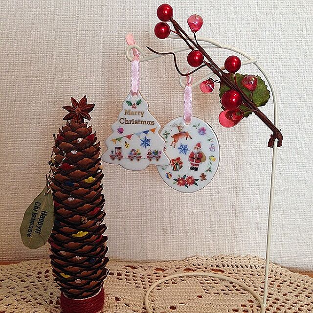 ポーセラーツは、季節感のある小物の種類も充実しています。クリスマスに合わせて、ツリーオーナメントを作ったneneさん。松ぼっくりと組み合わせる事で、より本格的な飾り付けになっています。