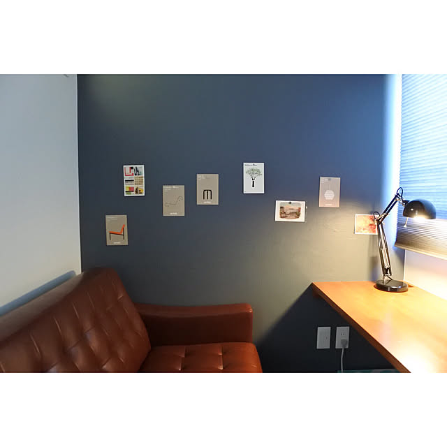 座り心地の良さそうなソファと落ち着きのある雰囲気が素敵なoharuさん宅の書斎には、IKEAのデスクライトが置かれていましたよ。屈折したアームにデザイン性を感じるIKEAのデスクランプや、アートのように壁面に散りばめられたポストカードが、お部屋にモダンで上質な印象を与えてくれています。