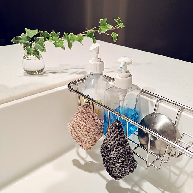 ちょっと使うのに便利な、小さいサイズのS字フックはいかがでしょうか。gooskaさんは、キッチンでミニサイズのS字フックを愛用されています。アクリルたわしの角を吊るすと、水切れが早くて清潔に使えるそうです。