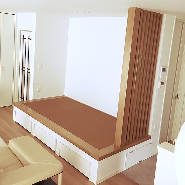 こちらのユーザーさんは、リビングの一角に小上がりスペースを設けています。手前側の面に設置された木格子が和風でおしゃれですね。大人でも寝転べられそうな広さで、家族の時間をより楽しく盛り上げてくれそうです。