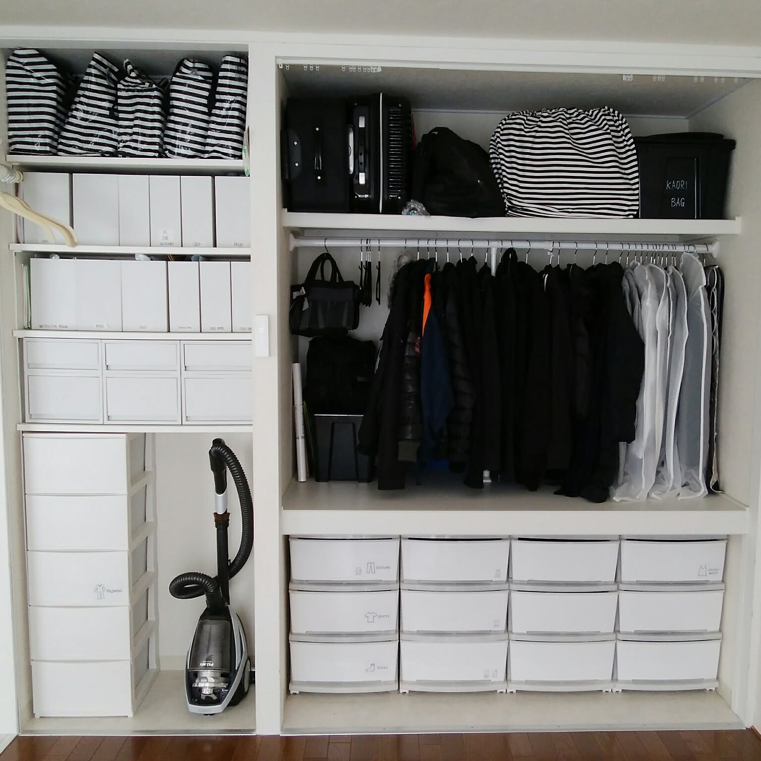 高さと奥行きのある押入れは、物が乱雑になりがち。こちらのユーザーさんは、押入れの中にチェストを置いてスペースをうまく活用されています。また収納ケースをホワイトで統一することで、より整った見栄えの良い空間に。