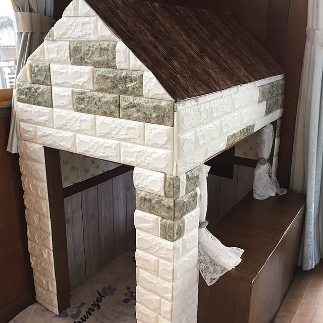 crossさんはお子さんが喜ぶキッズハウスを作りあげていました。牛乳パックをたくさん集めて作った大作ですが、材料は牛乳パックと100均グッズだけというのが驚きです。外観だけでなく内装も見事で、本格的なごっこ遊びが楽しめそうです。リビングなどに置いてあっても絵になります。