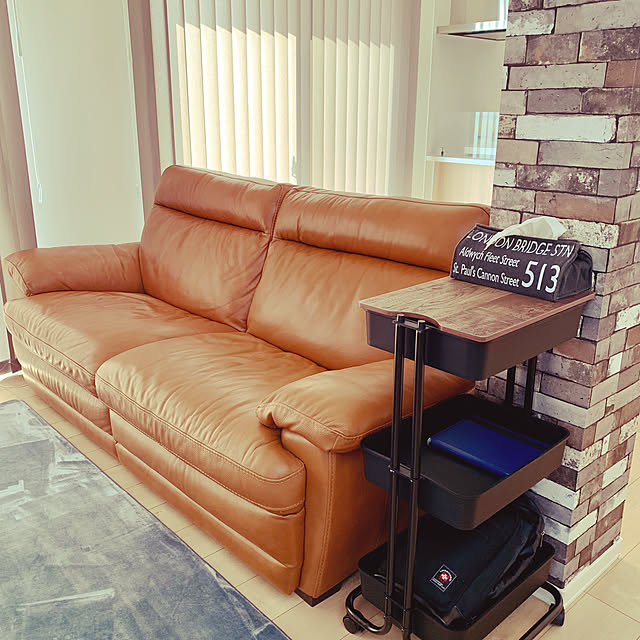 リビングに上質さをプラスしてくれるのは、ソファの本場・イタリアでなめした味わいのあるブラウンの本革。座面には大きな一枚革を使用しており、見た目も触り心地もハイクラスなソファです。