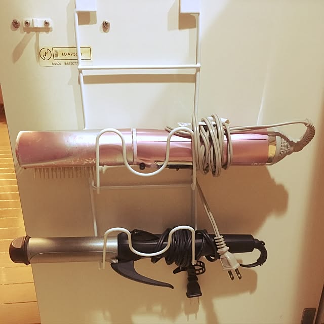 somiyu326さんは洗面台下の扉の裏に、カールドライヤーやヘアアイロンを収納されています。使っているのは鍋蓋用ラック。幅広のフックのおかげで、開け閉めの際にも落ちたりグラグラすることがなさそうですね。