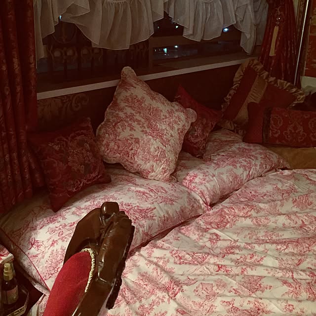 最近ホワイトインテリアに目覚めたというユーザーさん、手始めにベッド周りのアレンジを始めたようです。ZARA HOMEの白いコットンカバーに差し色の赤いクッションがよく映えます。間接照明とアートのバランスも素晴らしいです。