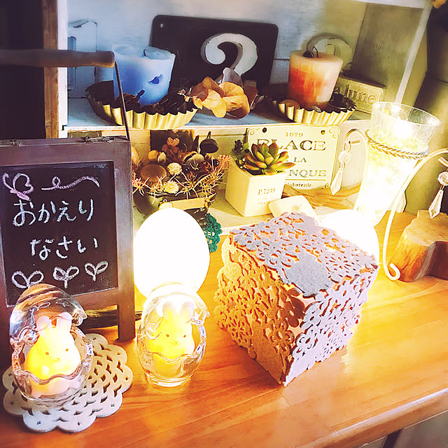 こちらもダイソーのフェルトコースターを利用した作品になります。ユーザーさんによるライトカバーです。柄の間から光がもれるようになっているので間接照明の効果もあります。ちょっとした雰囲気づくりなどに役立つアイテムですね。