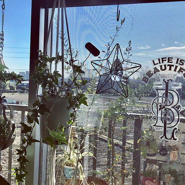 デザイン違いのスターモチーフをゲットしていたanさん。流木を立て掛けて、さりげなく吊るした飾り方にセンスを感じます。無機質な素材感が和む組み合わせですね。ブラックというシックな色味は、かわいらしいスター型を大人っぽく感じさせます。