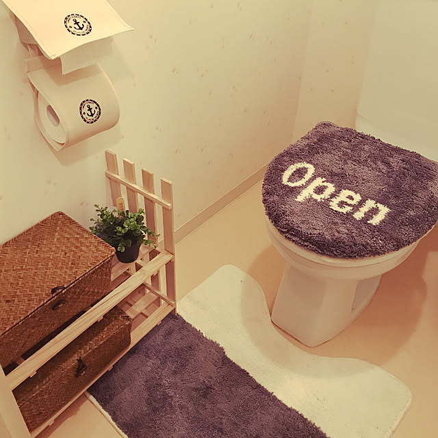 こちらのユーザーさんはタンクを隠した上のスペースにフレグランスやガーランドを飾っています。手洗い場にはフェイクグリーンを置いてあり、ナチュラルテイストのレイアウトですね!また、トイレ上の棚は目隠しのためにカーテンがつけられています。
