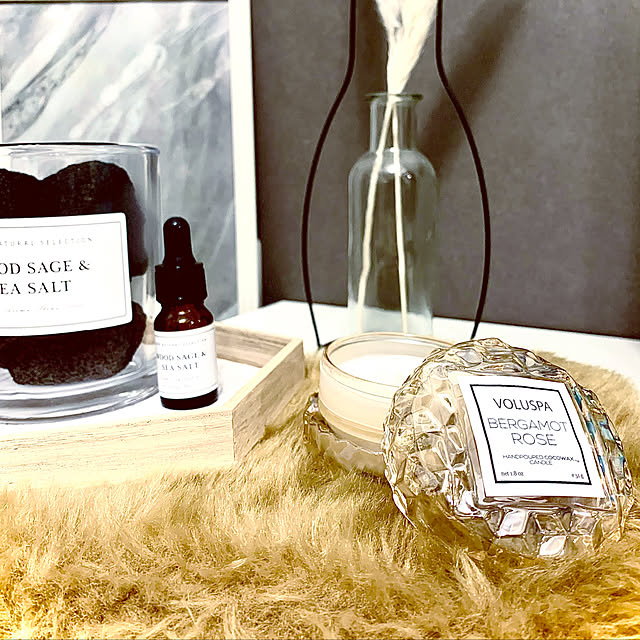 キラキラのパッケージが目を引くこちらは、VOLUSPAのアロマキャンドルです。Micccaさんは、ベルガモッドローズの香りをチョイスされました。海外インテリア風のデザインで、癒しタイムもテンションが上がりそうですね。