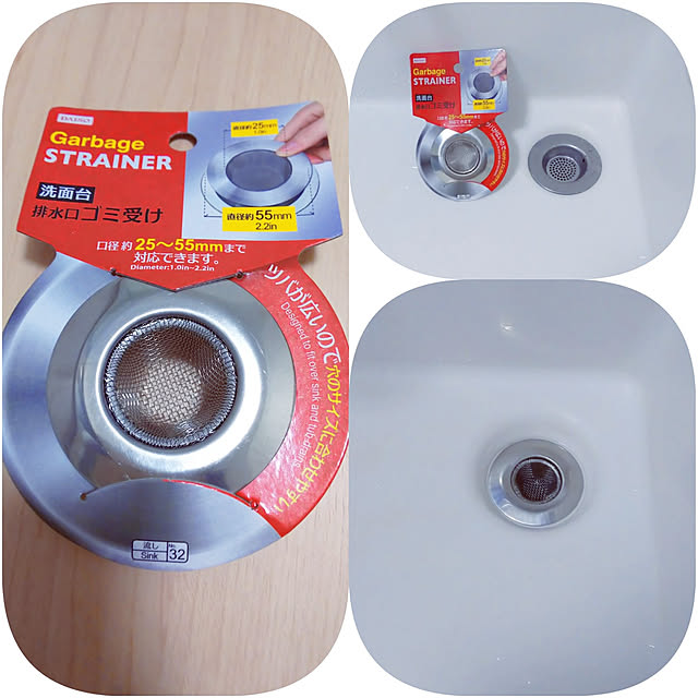 ダイソーの排水口ゴミ受けを洗面台に使用されているpipiさん。以前は違う商品を使用されていましたが、流れの良いダイソーのものにチェンジされたそうです。さっと流れてくれると、毎日のストレスも軽減されますね。ツバが広めにつくられているので、対応できる排水口が幅広いのも魅力です。