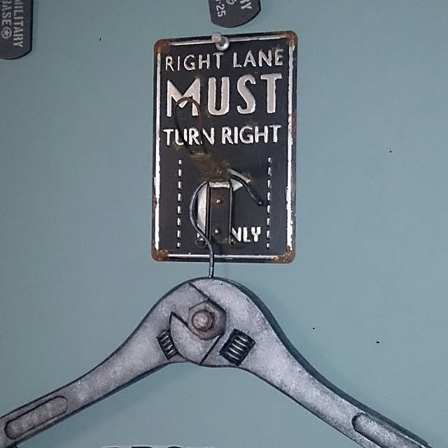 ユーザーさんは、セリアのブリキプレートにフックを取りつけ麻紐を巻き、ディスプレイ。そこにスパナで作ったハンガーを掛けてインダストリアルな壁面アイテムにしています。ユニークな素材を使った個性的なDIYに惚れ惚れします♡