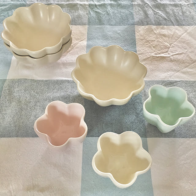 hannariさんは、セリアで2種類の小鉢を買っています。どちらもパステルカラーで、お花の形をしたデザインです。小さい方は離乳食入れにすると、片手でも花びらのくぼみにスプーンがフィットしてすくいやすかったとのことですよ。